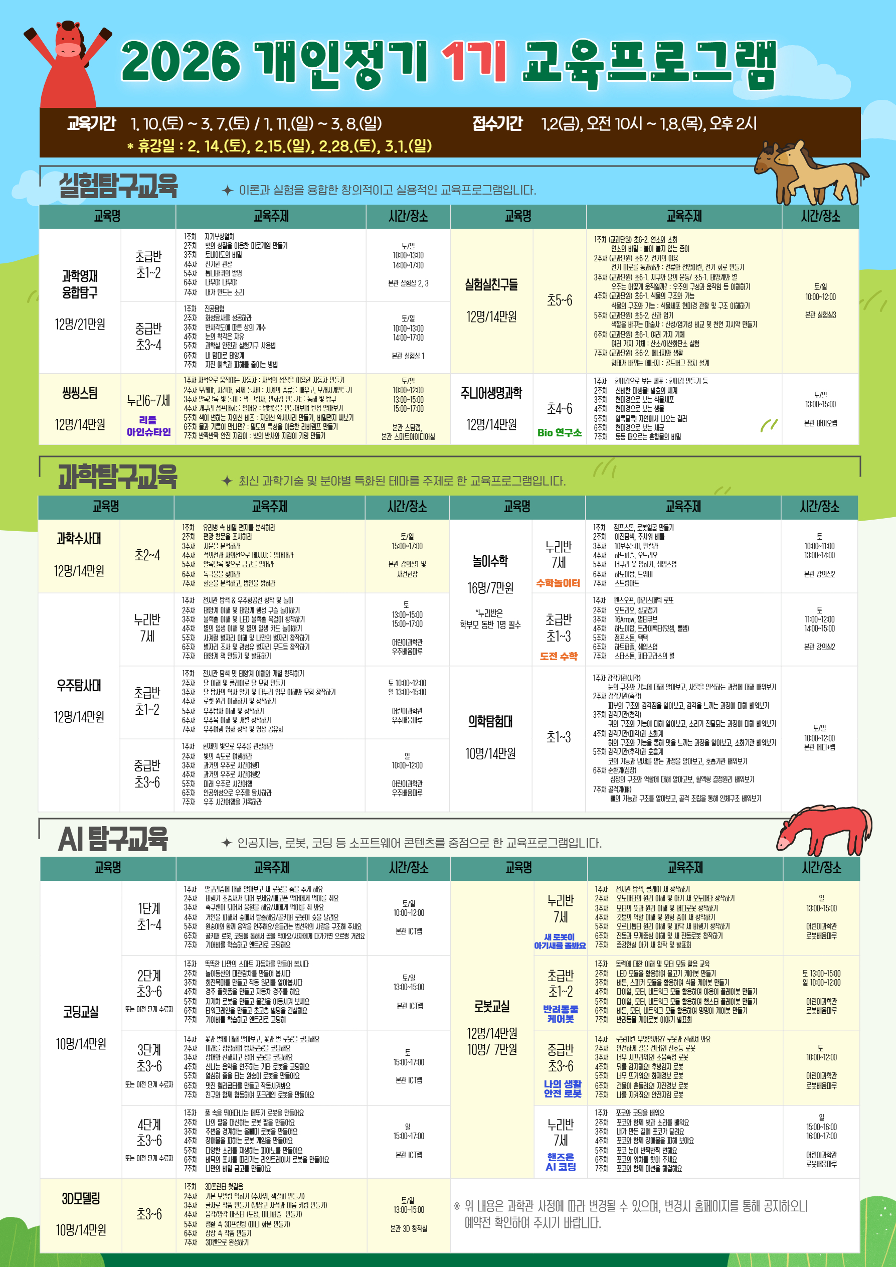 2026년 개인 정기 1기 (1~2월) 교육 프로그램 안내(국립광주과학관)
