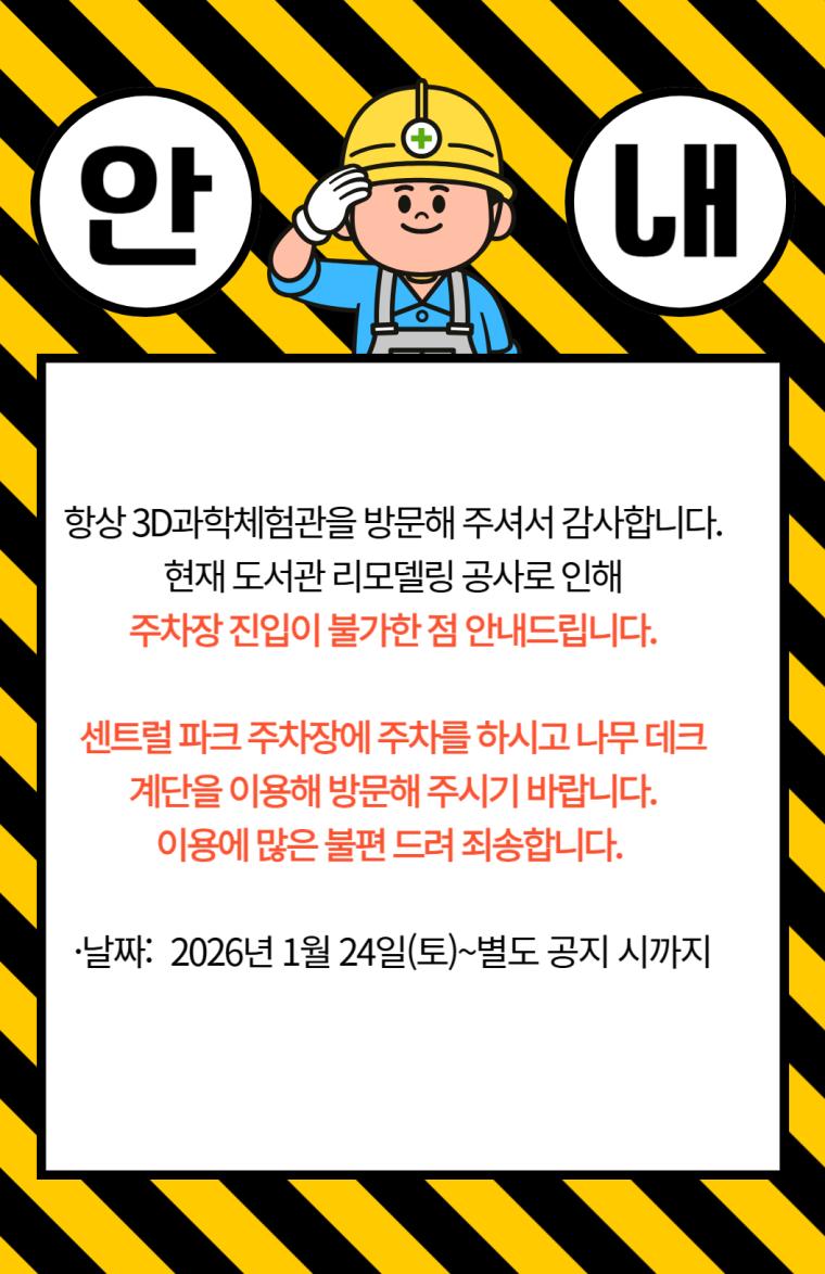 <공지> 웅상도서관 리모델링 공사로 인한 3D과학체험관 주차장 이용불가 안내 (양산3D과학체험관)