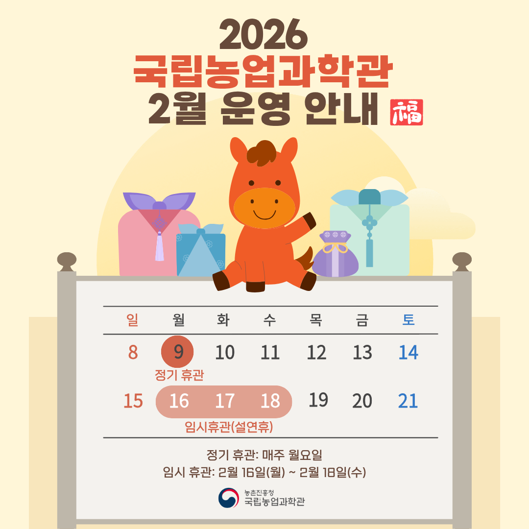 국립농업과학관 | 2026년 2월 운영 안내 (농촌진흥청 국립농업과학관)