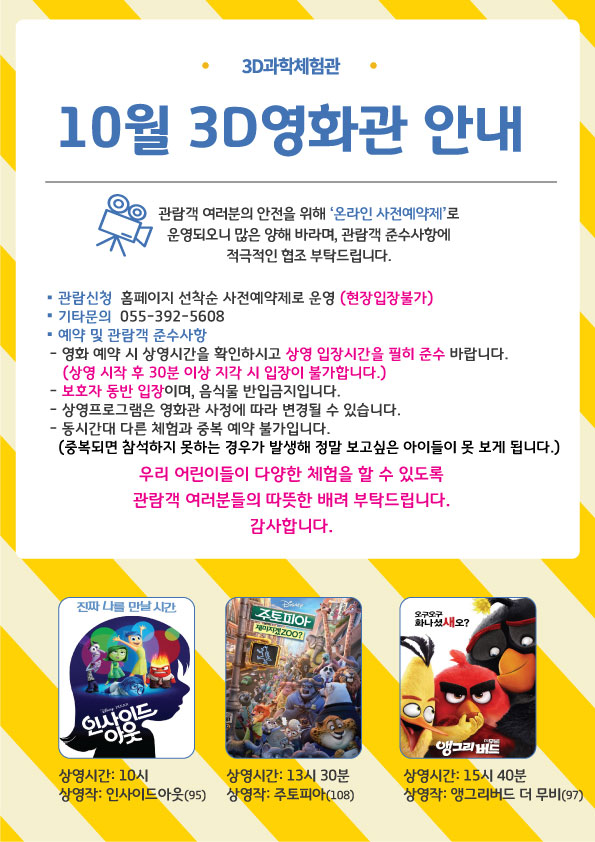 3D과학체험관 10월 3D영화관 상영 안내(양산3D과학체험관)