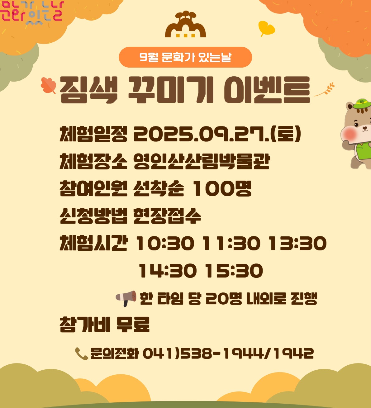 영인산산림박물관 9월 문화가 있는 날 [짐색 꾸미기] 행사 안내(영인산산림박물관)