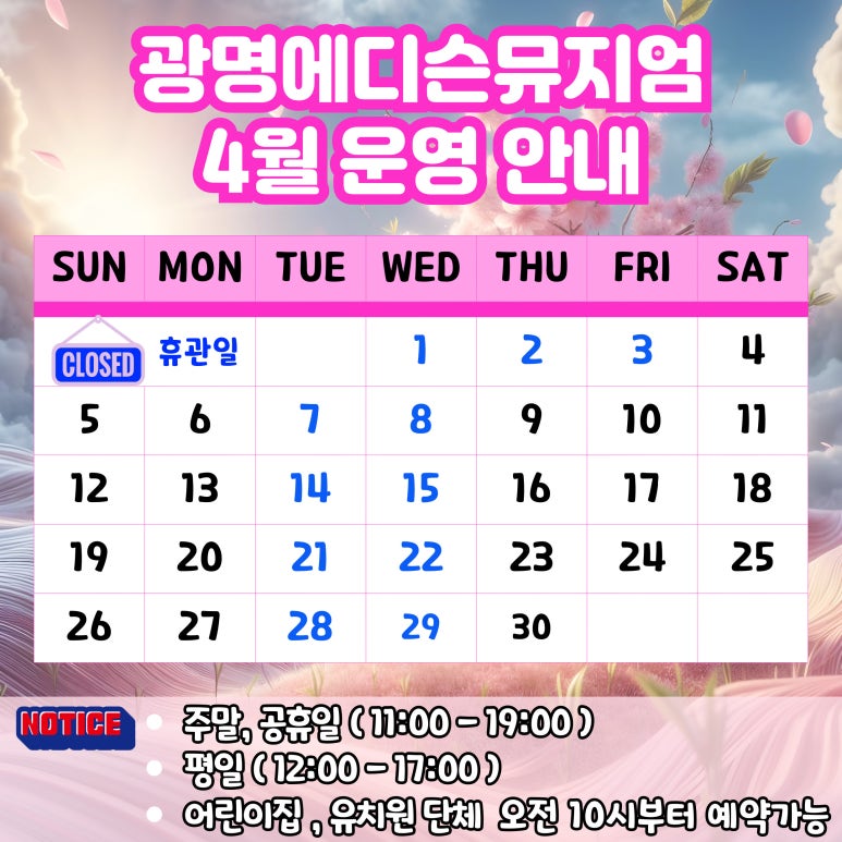 2026년 4월 광명에디슨뮤지엄 운영안내 입니다.