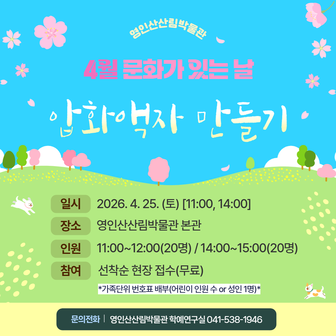 2026년 4월 문화가 있는 날 행사 '압화액자 만들기' 안내(영인산산림박물관)