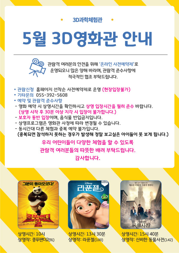 3D과학체험관 5월 3D영화관 상영 안내(양산3D과학체험관)