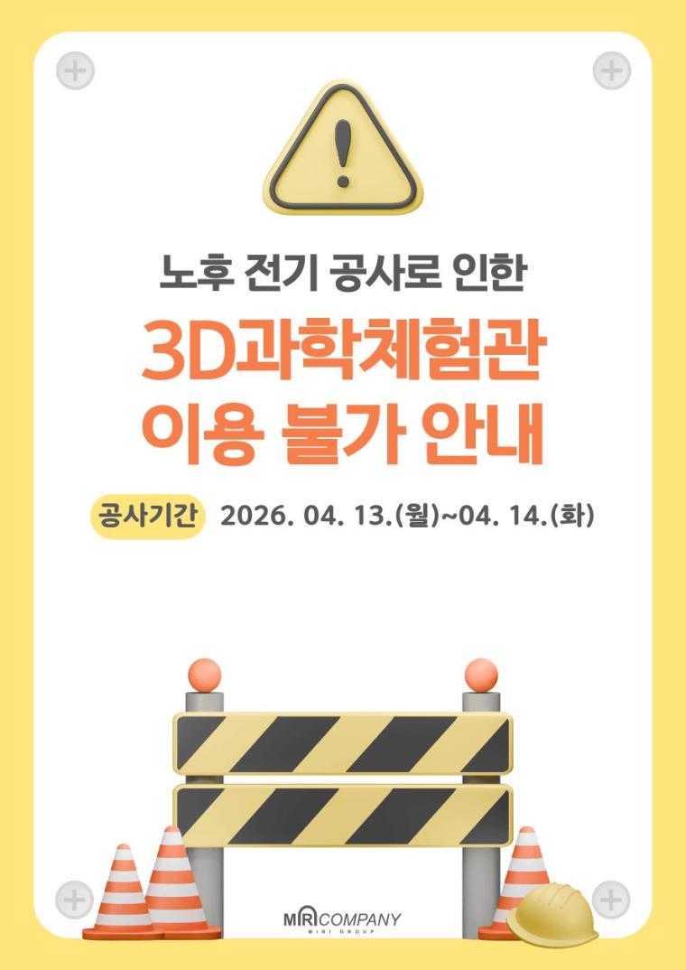 3D과학체험관 노후 전기 공사로 인한 체험 불가 안내(4/13~14)(양산3D과학체험관)