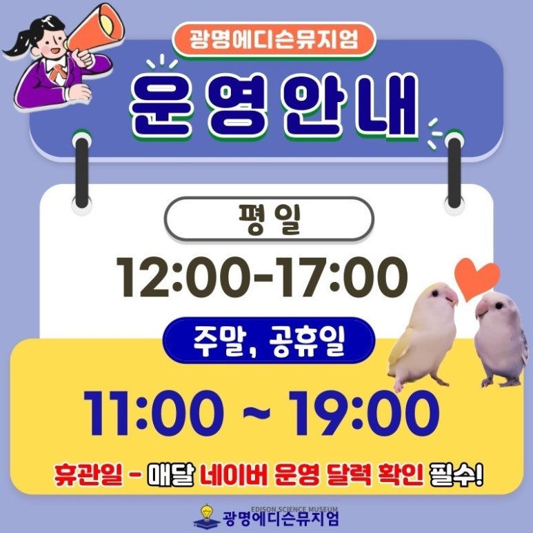 2026년 3월 광명에디슨뮤지엄 운영안내 입니다.
