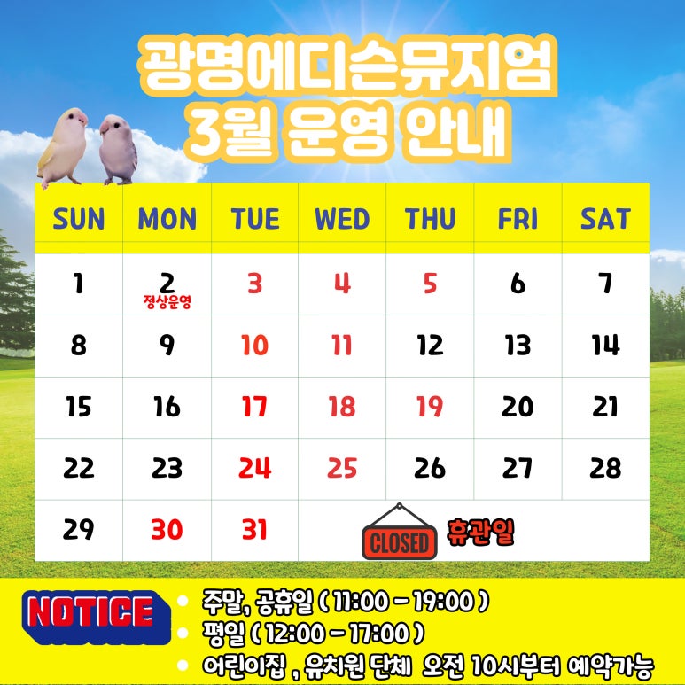 2026년 3월 운영안내(광명에디슨뮤지엄)